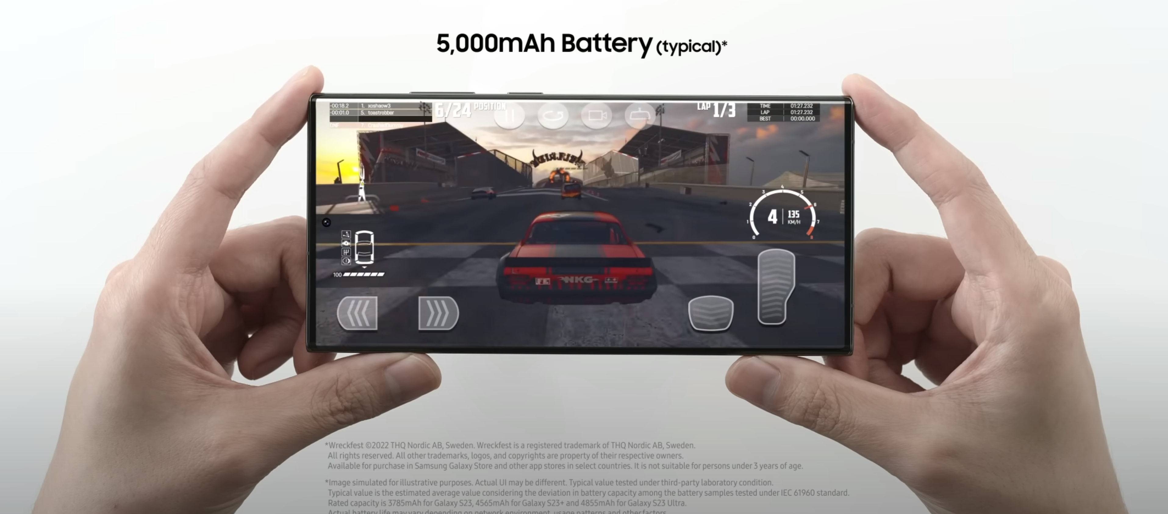 갤럭시 S23 울트라의 배터리 용량은 5,000mAh입니다.