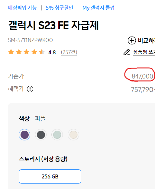 갤럭시 S23 FE 256GB |