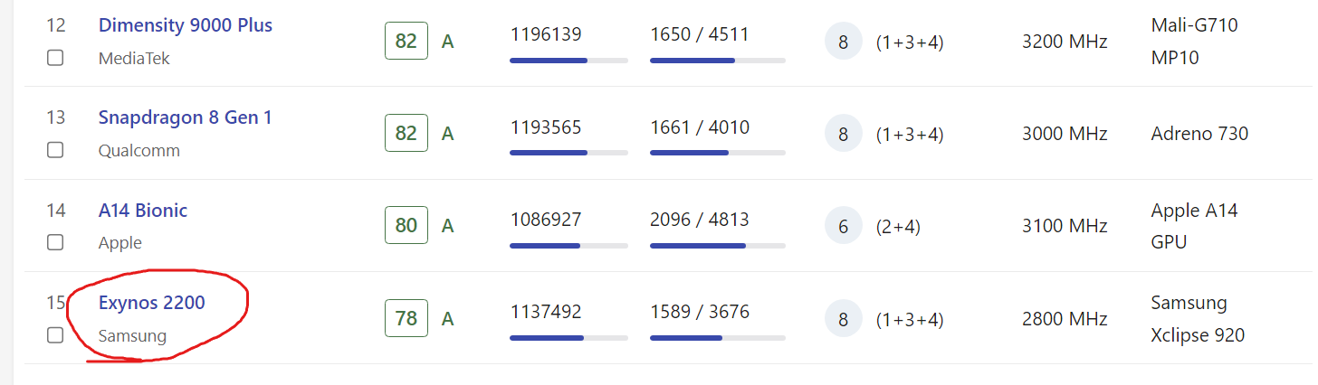 스마트폰 Soc (프로세서 혹은 성능) 종합 랭킹은 15위입니다.